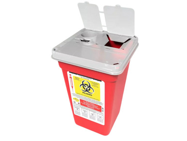 Bote contenedor para el desecho de agujas y punzocortantes de 1lt de capacidad, tapa post - sellada al desechar. Para el corrrecto manejo de materiales. fabricado con plastico biodegradable.